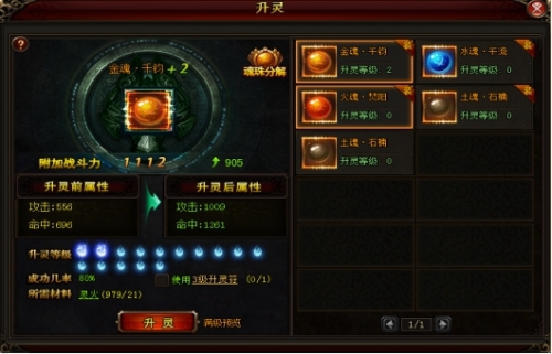 5、魂珠升灵可提升魂珠属性增加玩家战力,升灵时具有成功率,使用一定数量【升灵符】可将成功率提升至100%