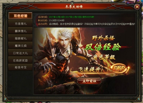 活动说明:活动期间,击杀怪物获得200%经验