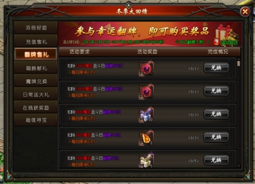 活动说明:活动期间,参与幸运翻牌活动,翻牌一定次数且消耗少量魔石可领取活动奖励
