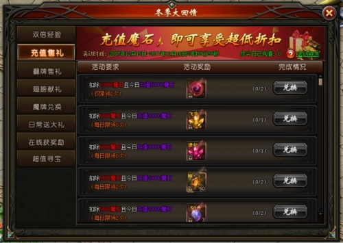 活动说明:活动期间,充值一定数额魔石且消耗少量魔石可领取活动奖励