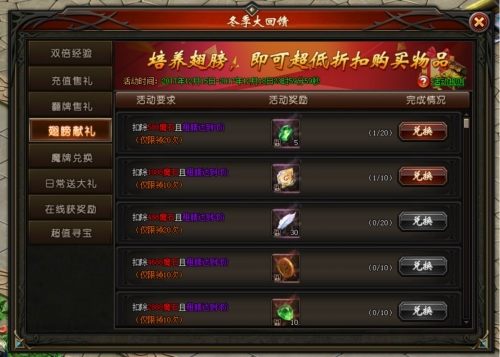 活动说明:活动期间,翅膀到指定阶数且消耗少量魔石可领取活动奖励,阶数越高,奖励越丰厚!