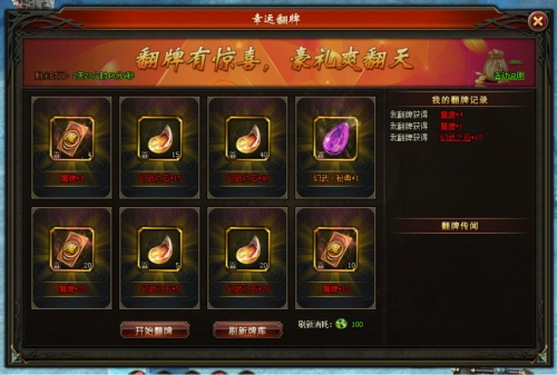 2.牌库刷新成功,可开始翻牌,奖励随机位置分布
