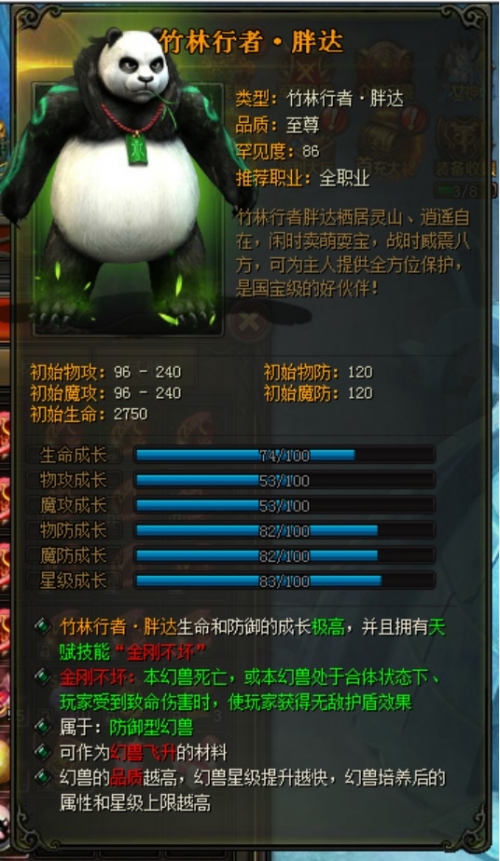 1.开服30天及之后,第一名极品奖励:金色幻兽——竹林行者·胖达