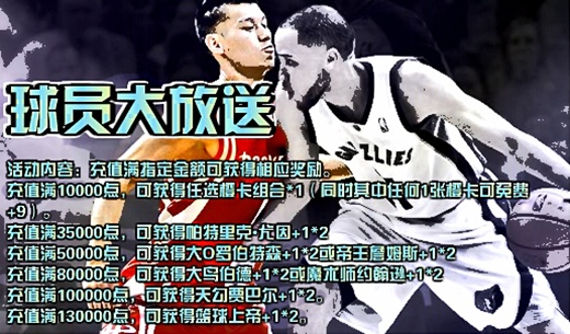 充值满80000点,可获得大鸟伯德+1*2或魔术师约翰逊+1*2