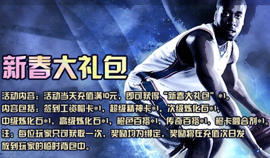 活动内容:活动当天充值满10元,即可获得“新春大礼包”*1。