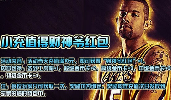 活动内容:活动当天充值满10元,即可获得“财神爷红包”*1。