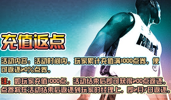 注:如玩家充值1000点,活动结束后即可获得200点返还。点卷将在活动结束后返还到玩家的经理上,即2月7日返还。