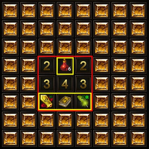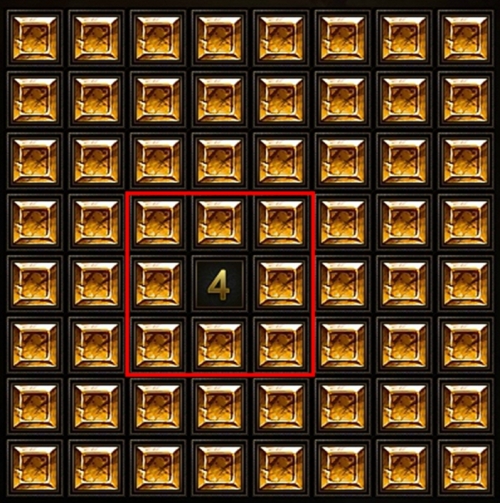 3. 点击格子后,若格子显示为道具,则立刻获得此奖励,奖励将自动放入“寻宝仓库”中;若格子显示为数字X,则表明距离此格子最近的所有格子中共有X个宝物,需要玩家自行寻找。