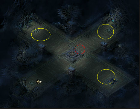 死亡的天神,只有鲜血才能唤起它的注意!击杀地图中黄色圈的所有小怪后,BOSS死亡魔神才会出现在地图中央!死亡魔神每损失10%的生命值,将会召唤一群小怪来群殴入侵者,各位勇士要小心了!