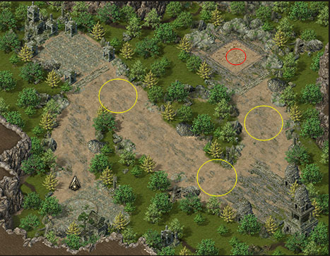 黄色圆圈范围内,将刷新大量小怪阻止玩家继续前进!