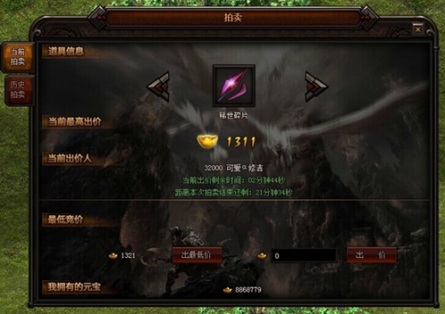 Ø 有玩家出价后,3分钟内若没有其他玩家出价,最高出价者获得物品归属!