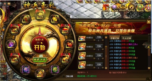 活动说明:活动期间内,花费20元宝可抽一次奖励,有几率获得元宝现金大奖,每次抽奖还可以获得2积分,积分可以在活动中兑换道具,机会难得,千万不要错过!